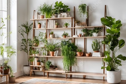 living room, modern, interior design, home decor, plant, fern, greenery, white, minimalist, sofa, coffee table, emerald green, beige, natural light, bookcase, bookshelf, cosy, calm, calmness, furniture, spring, summer, house, apartment, lush, decor, interior, contemporary, home, photorealistic, rendering, realistic, relaxing