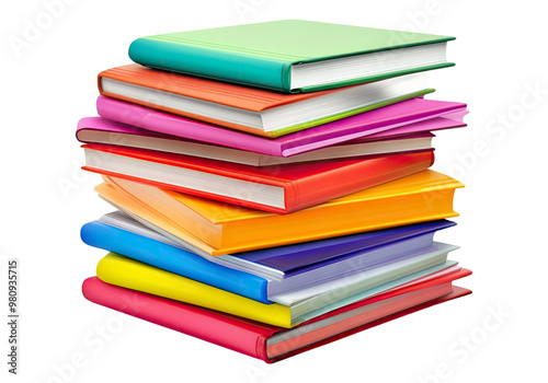 Books with bright covers in one pile. Transparent background, Isolated PNG.