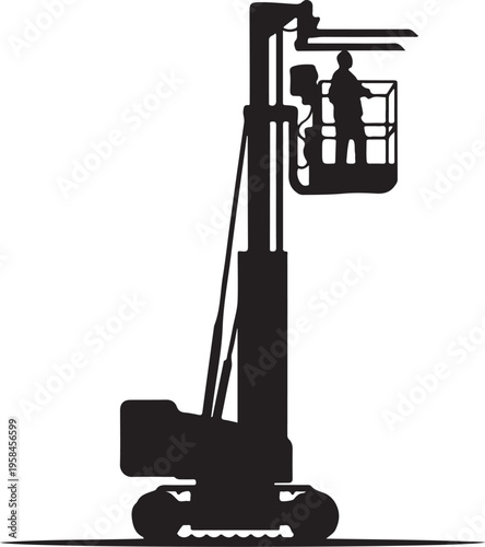 Boom lift, aerial lift, scissor lift, silhouette, construction equipment, vector