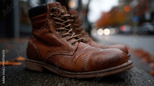 Boot captured midurban walk in soft fall urban photography