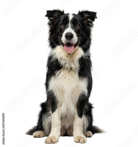 border collie, dog, isolated, white background, pet, animal, mammal, full body, sitting, panting, black-and-white, tongue, portrait, canino, studio shot, cut-out, closeup, furry, adorable, cute, friendly, breed, pedigree, domesticated, companion, intelligent, white, black