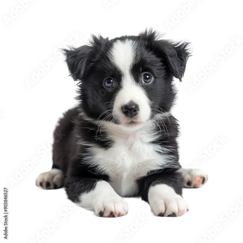Border collie puppy little dog sitting isolated on transparent background cutout PNG