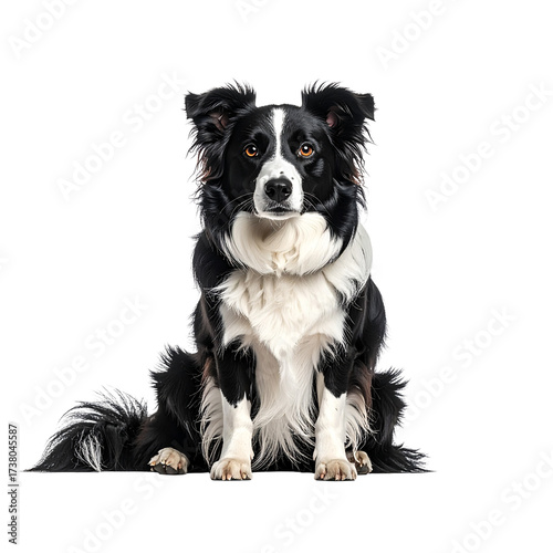 Border Collie Sitting Upright, Front View, Alert Expression, isolated on transparent background