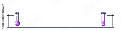 Border with glass chemistry flasks. Two different chemistry tubes.