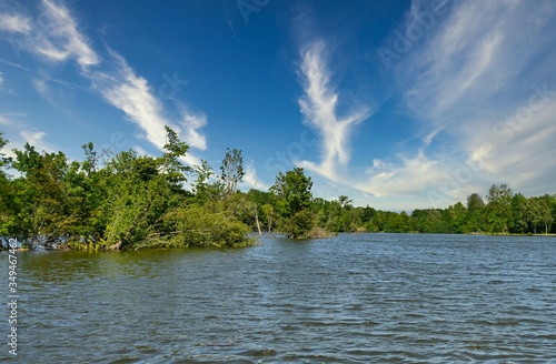 water, river, lake, heaven, landscape, nature, forest, blue, cloud, summer, green, shaft, park, scenic, grass, beauty, outside, island, scene, travel