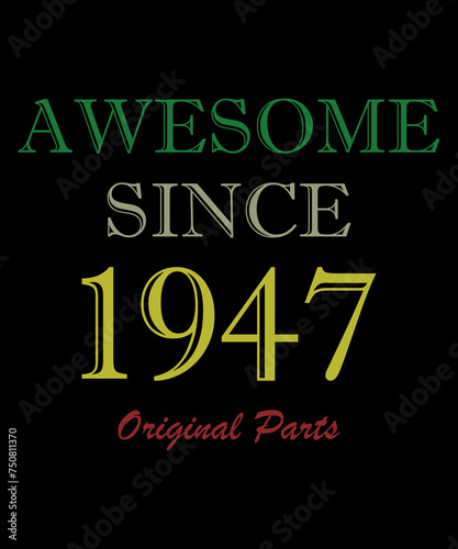 Born in 1947, Happy Birthday typography. Legend since 1947. Awesome since 1947.