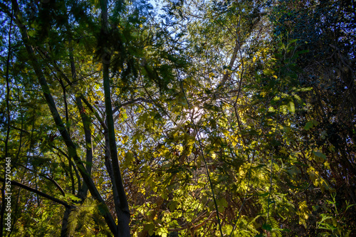 tree, forest, nature, leaf, green, heaven, spring, wood, autumn, foliage, summer, landscape, branch, sun, light, park, season, plant, natural, blue, environment, chlorophyll, bole, autumn, enchanted, threatening, fairy, goblin