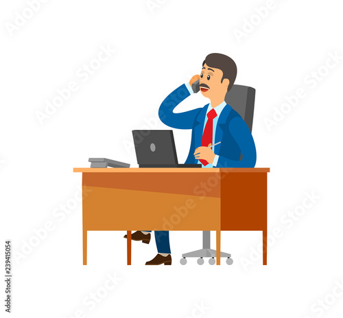 boss, executive, professional, leader, vector, office, businessman, men at work, employer, chief, business, work, job, entrepreneur, man, person, manager, official, illustration, mobile phone, phone, mobile, discussion, workplace, laptop, computer, dialling, partner, deal, people, male, concept, cartoon, entrepreneurship, career, company, serious, specialist, associate, adviser, caucasian, character, drawn, paper, paperwork, furniture, suit, working