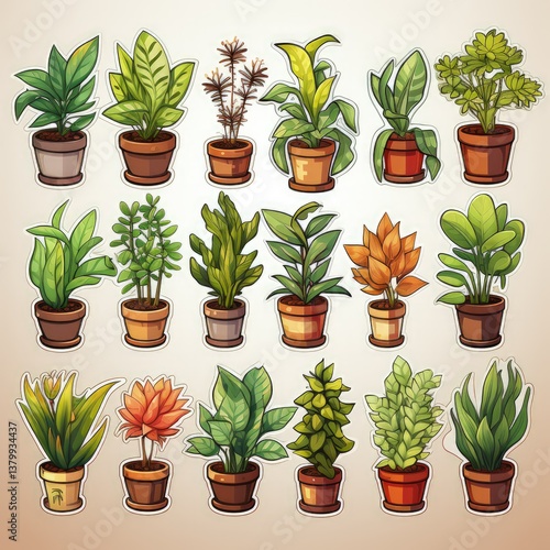 Botanical Sticker Sheet Featuring Flat Plant Designs