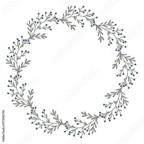 chaplet, frame, border, circle, tree branch, berry, foliage, leaf, stem, sprig, banner, template, poster, botanical, nature, plant, laurel, ring, round, garland, winter, delicate, minimalist, rustic, farmhouse, organic, floral, holiday, seasonal, arrangement, countryside, ceremony, wedding, subtile, calm, greenery, illustration, vector, design, soft, natural, eco, ornament, decoration, ornate, wallpaper, element, decor, spring