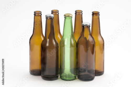 Botellas de cerveza verde y amarilla