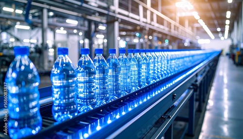 water, bottle, production, line, factory, industry, manufacturing, process, clean, plastic, blue, conveyer, belt, automated, equipment, cardboard box, drink, beverage, fresh, clear, transparent, filling, supply, healthy, hydratation, liquid, container, machine, technology, modern, facility, plant, system, assembly, product, bottled, water bottle, plastic bottle, water supply, water treatment, water purification