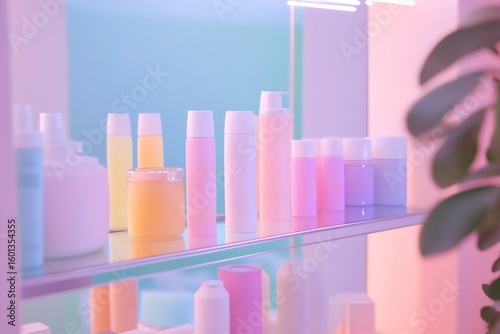 hair, care, product, salon, beauty, cosmetic, pastel, colourful, bottle, jar, shelf, glasses, retail, product, display, merchandise, shopping, store, barbershop, treatment, shampoo, conditioner, styling, serum, mask, cream, lotion, gel, spray, wellness, personal, hygiene