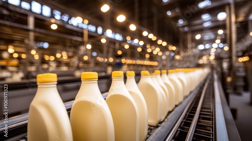 milk, bottle, production, factory, conveyer, dairy, processing, industry, equipment, yellow, cap, storage, supply, logistic, hygiene, quality, cardboard box, assembly, machinery, workflow, automation, fresh, liquid, nourishment, health, environment, sanitation, efficiency, material, technology, transportation, distribution, retail, consumer, good, manufacturing, safety, standard, men at work, labor, economy, market, demand, freshness, processing plant, facility