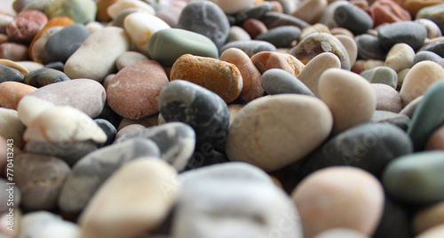 Bottom Angle View Of Smooth Pebble Rocks Closeup