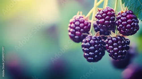 Bountiful Blackberries Hanging from a Branch in a Sunlit Natural Environment Exuding Freshness : Generative AI