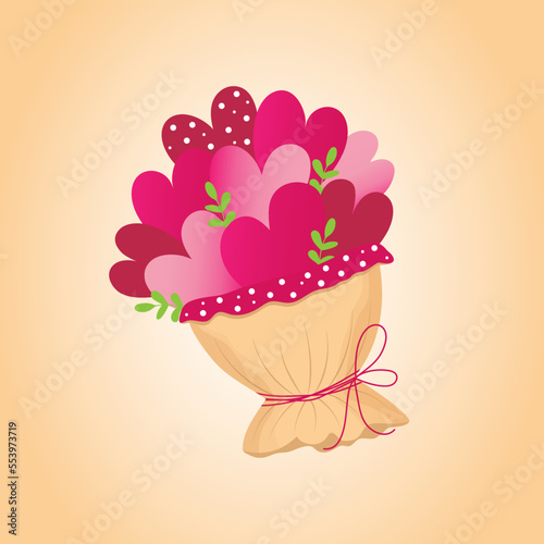 Bouquet hearts on beige background. Design for Valentines Day, Whomans Day, Mothers Day, Birthday.