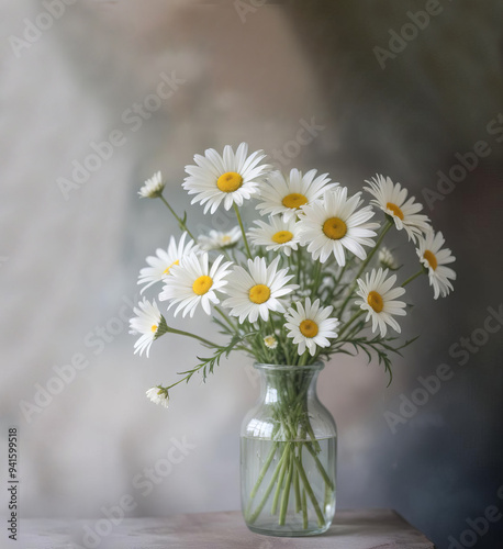 Bouquet of daisies in a transparent vase