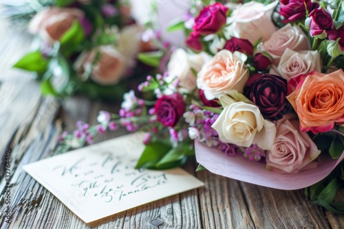 bouquet of flowers arrangement with note, romantic gift for anniversary, birthday, valentines day or Mother's Day