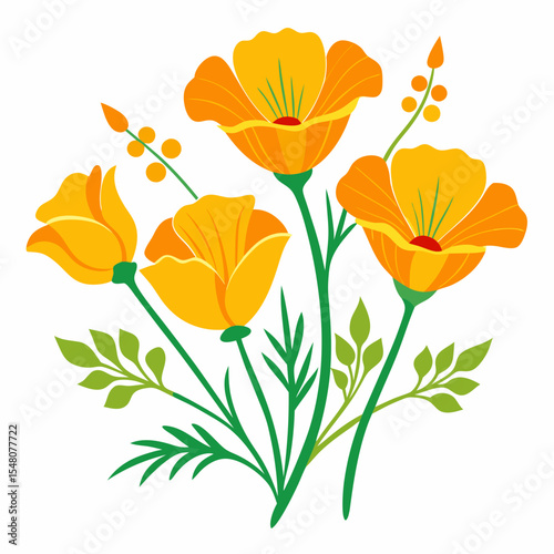flower, nature, floral, leaf, pattern, plant, flower, vector, illustration, summer, orange, seamless, design, art, spring, yellow, poppy, beauty, blossom, flora, decoration, garden, colours, bud, bouquet
