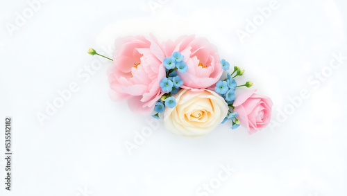 bouquet of pink and white roses in vase with white background, 8K image