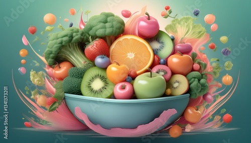 bowl brimming with a cascade of fresh fruits and vegetables