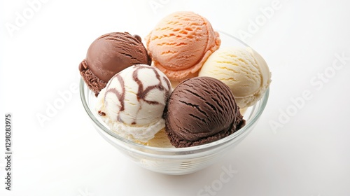 ice cream, scoop, dessert, bowl, assorted, favor, sweet, glacé, cold, treat, chocolate, vanilla, strawberry, creamy, refreshing, food, delicious, glass bowl, closeup, macro, white background, summer, refreshment, tasty, dish, sweetness, scoop