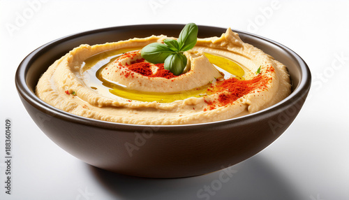 Bowl Of Creamy Hummus Topped With Olive Oil And Paprika Isolated On Transparent Background Ready For Your Designs