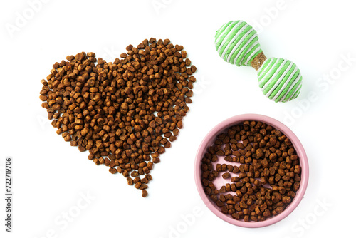 Bowl with dry pet food isolated on white background