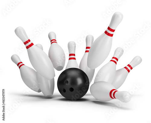 three-dimensional, bowling, activity, ball, bowl, business, demolished, fun, game, group, hit, hobby, leisure, object, row, score, shape, single, skittle, kill, spare, sphere, sport, strike, striped, success, symbol, succeed, render, illustration, image, isolated, white, background
