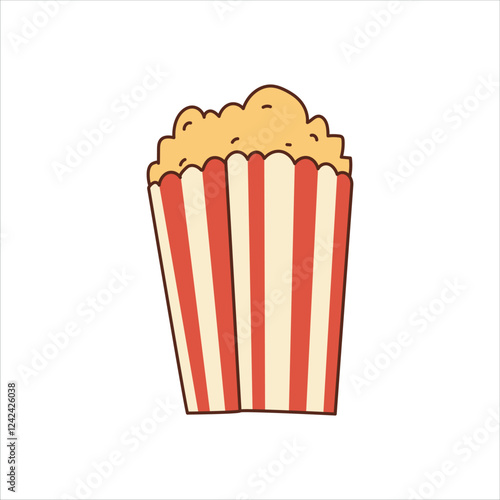 popcorn, food, box, snack, corn, motion picture, container, icon, cinema, vector, illustration, pop, theatre, symbol, drink, red, object, film, cup, bucket, cartoon, design, trash, meal, fun