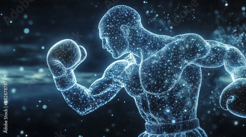 silhouette, sport, boxing, circle, athlete, training, wind, vector, action, whirlwind, strong, dot, boxer, fighter, particle, dust, point, ring