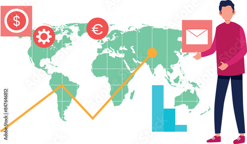 boy, map, electronic mail, arrow, statistic, illustration, business, vector, connection, infographic, concept, social, computer, network, icon, cyberspace, background, communication, symbol, technology, web, media, option, datum, information, application, graphic, earth, global, app, phone, multimedia