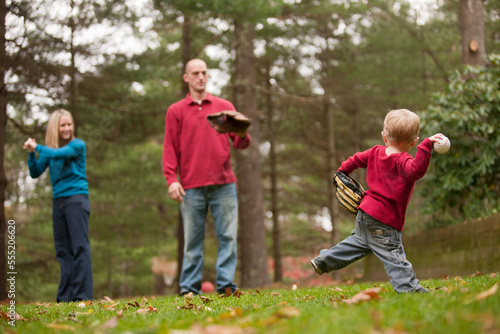 horizontal, outdoors, day, sport, children, father, childhood, communication, mother, son, youth, bonding, ball, wife, married, husband, us, baseball, deaf, playing, boy, kindergartner, throwing, photo, disability, massachusetts, gesticulate, new england, north america, avocation, backview, selective focus, family, sport, park, baseball glove, color image, three people, full-length, casual clothes, caucasian appearance, 30s, hard of hearing