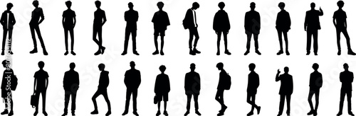 boy silhouette Vector illustration, diverse silhouette of men in various poses. depicting standing, walking, and gesturing males