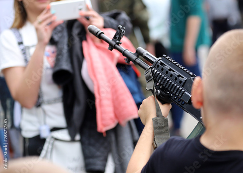 boy with a machine gun ,machine gun in the hands of a child, weapons in hand