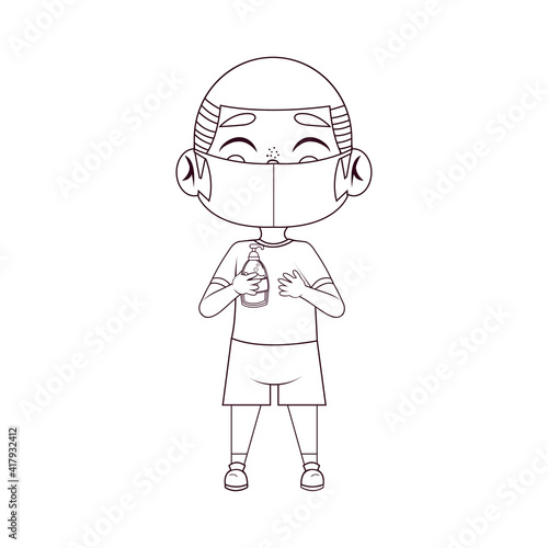 children, boy, mask, gel, vector, illustration, hygiene, pandemic, antibacterial, children, virus, face, epidemic, safety, care, protection, medicals, health, prevention, infection, clean, disease, flu, clip art, corona, flu