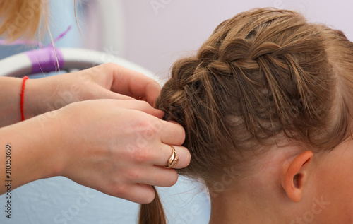 coiffure, pigtail, girl, hair, salon, hand, master, weaving, beauty, children, head, finger, comb