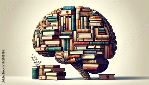 Brain made of books with knowledge, learning, education, and isolated.