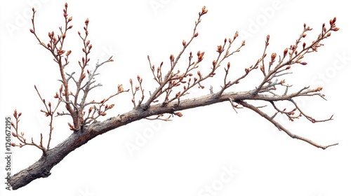 Branch with Buds Against White Background, Symbolizing Spring's Arrival and Renewal