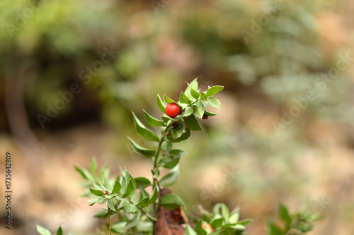 branch with red berries in the forest