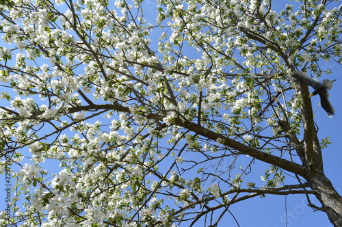 tree, spring, blossom, flower, sky, nature, cherry, flower, white, tree branch, blue, bloom, blooming, plant, garden, green, season, leaf, blossom, beautiful, day, beauty, summer, flora, apple