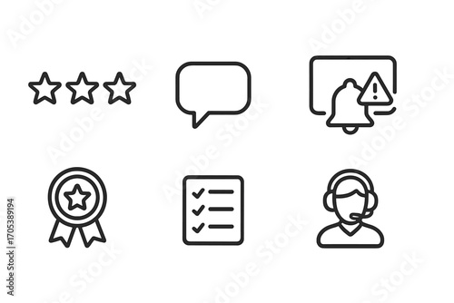 brand, monitoring, icon, outline, icon, set, reputation, review, star, comment, bubble, social, media, alert, graph, rating, badge, feedback, form, client, support, crisis, management, line, black, colours