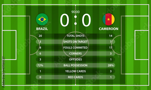 brazil, cameroon, soccer, cup, score, earth, match, sport, graphic, background, layout, infographic, championship, field, lineup, ball, information, tournament, competition, football, illustration, statistic, statistic, arena, banner, board, circle, concept, country, country, design, element, emblem, event, flag, friendship, green, infographic, international, nation, national, play, poster, screen, symbol, template, vector, versus