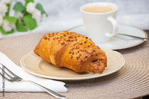 food, breakfast, croissant, hot drink, pastry, cup, plate, bread, sweet, meal, dessert, snack, tea, bakery, delicious, baked, cake, french, drink, white, bun, morning, tasty, fried, fresh, baguette, baker, cafes, cereal, drawer, flour, grain, group, integral, nut, variety, wheat