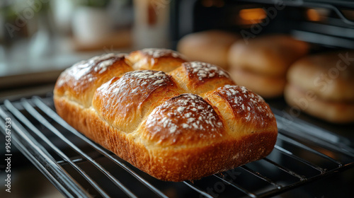 Bread Baking: A bread loaf baking in the oven with a beautifully risen crust and a golden-brown exterior.
