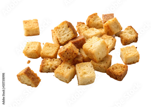 crouton, bread, toasted, piece, food, snack, crispy, garnish, salad, soup, topping, gold, brown, baked, ingredient, savoury, texture, isolated, white, closeup, detail, culinary, epicure, side dish, cooking, kitchen, receipe, meal, simple, organic, natural, healthy, portion, cube, square, crunchy, dry, baked goods, product, merchandise, retail, still life, art