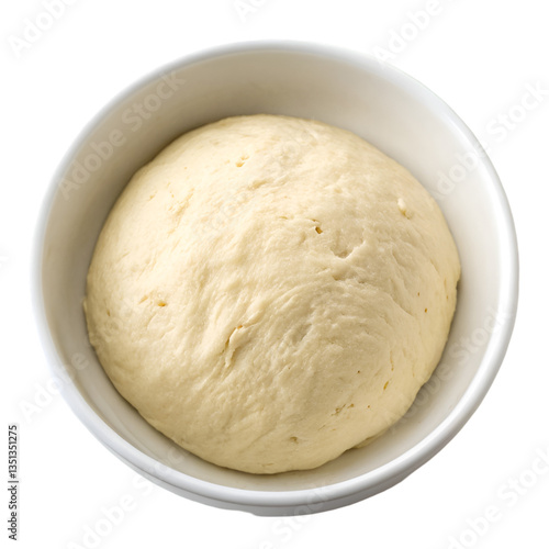 Bread dough in white bowl on top view isolated on transparent background