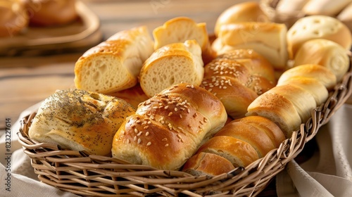 breadbasket filled with assorted rolls and breadsticks, ready to accompany a meal