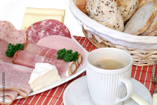 breakfast, fresh baked bread, cheese and meat